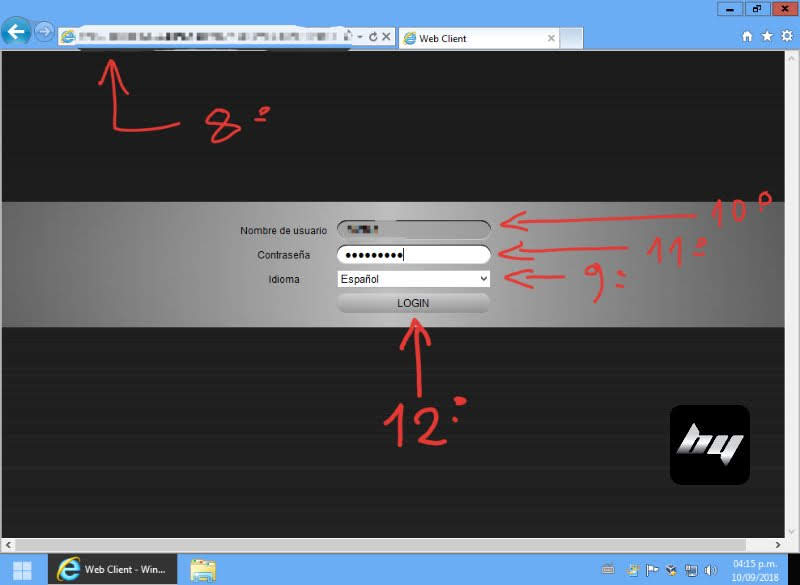 8. Con esto termina la instalación inicial. Para ver las cámaras en su máquina: abrir una ventana del navegador «Internet Explorer» y escribir en la barra de direcciones la dirección del equipo DVR (como se muestra en la siguiente imagen).