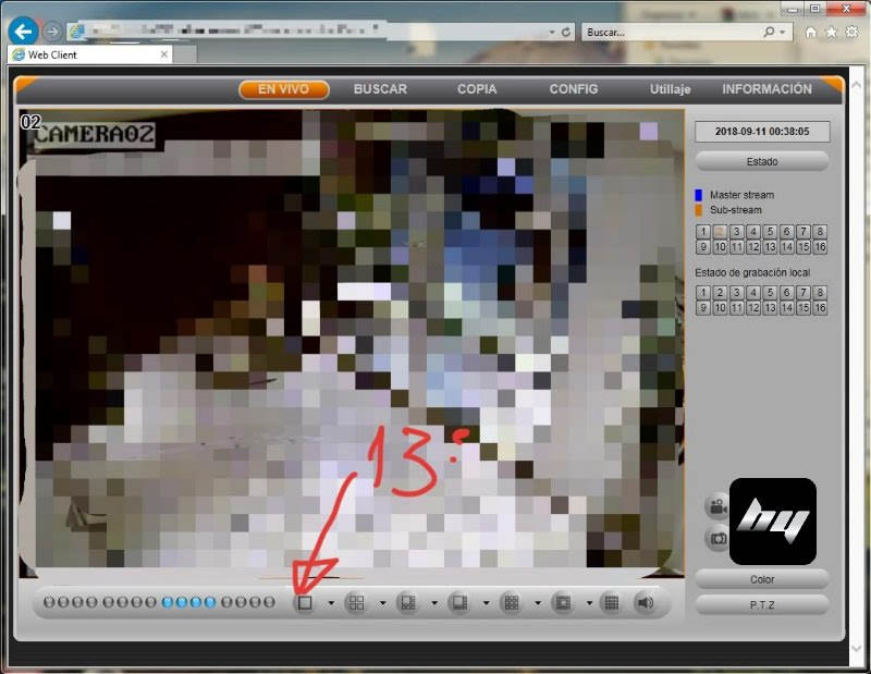 13. Hacer clic en el botón de cámara para cambiar el número de cámara. Y de esta forma aparece el video en vivo de la cámara elegida (como se muestra en la siguiente imagen).