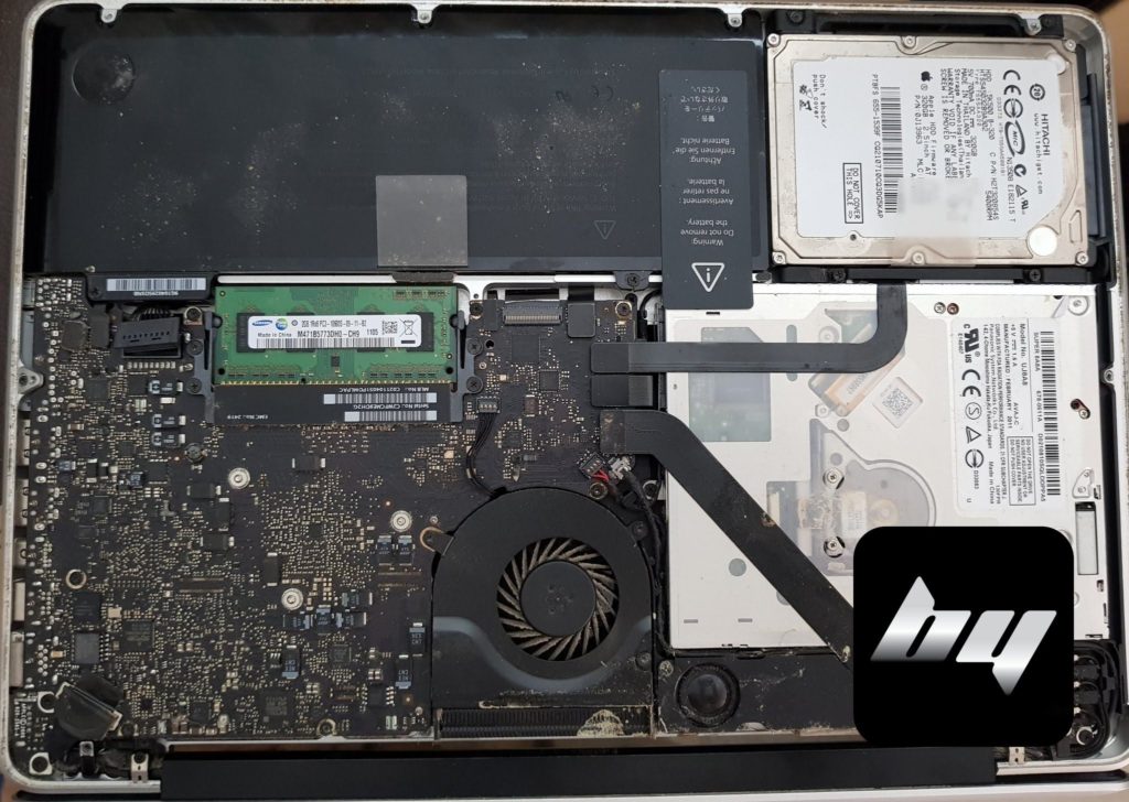 Esta Macbook Pro no arrancaba el sistema operativo. Lo solucionamos haciendo un backup de los archivos de usuario y luego formateando la unidad completa para reparar los daños. Instalamos el sistema operativo original Mac OS X y lo actualizamos a la última versión (fotos 1, 2, 3 y 4). Realizamos una limpieza interna completa (fotos 5 y 11): del gabinete (fotos 6 y 7), de las ventilaciones y cooler (fotos 8, 9 y 10). Por último reemplazamos el cable del cargador MagSafe por uno nuevo, porque no cargaba o cargaba muy lento (foto 12).