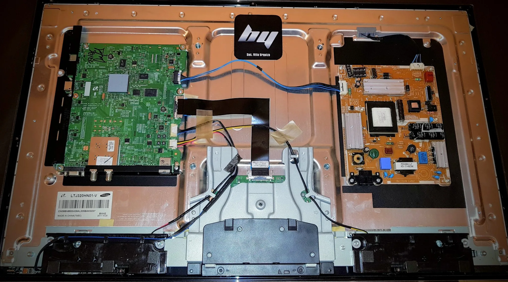 Este televisor smart dejó de encender entrando en un reinicio constante. Lo solucionamos reparando la placa lógica o motherboard.