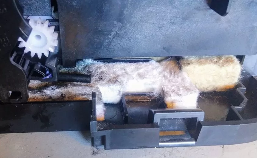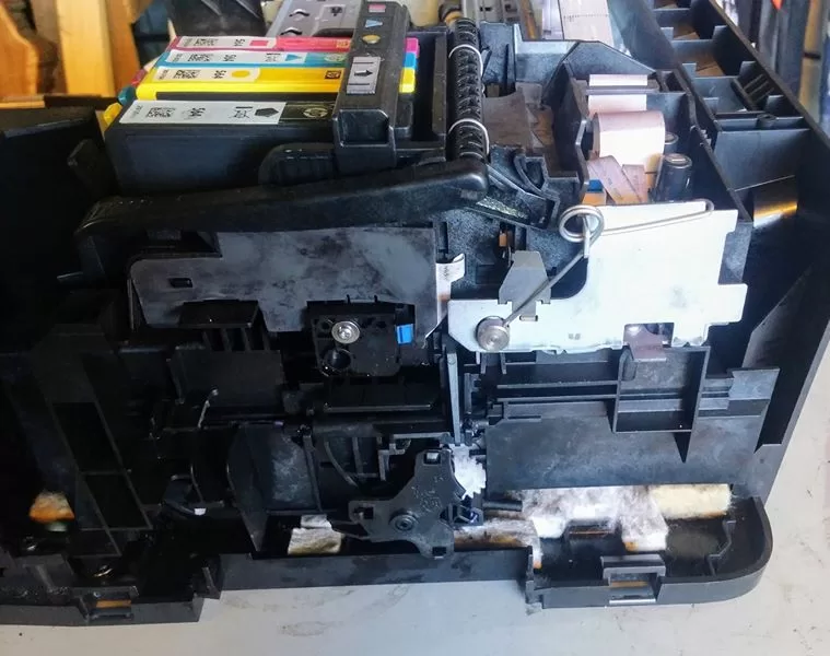 Esta impresora de tinta multifunción HP Photosmart Plus tenía un problema característico de este modelo, no alimenta la hojas. Lo solucionamos reconstruyendo el engranaje dañado. Aprovechamos para limpiar el interior y reemplazar las almohadillas de tinta de desecho.