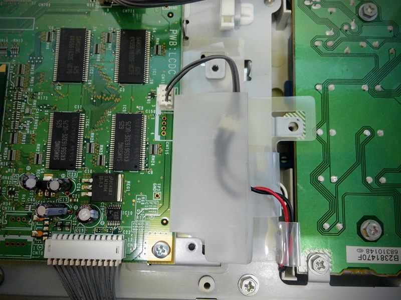 En esta Ricoh se quemó la lámpara que ilumina la pantalla táctil. Lo solucionamos reemplazándola con una tira de micro LEDs, de mayor vida útil y misma iluminación, realizando la adaptación mecánica y electrónica correspondiente.