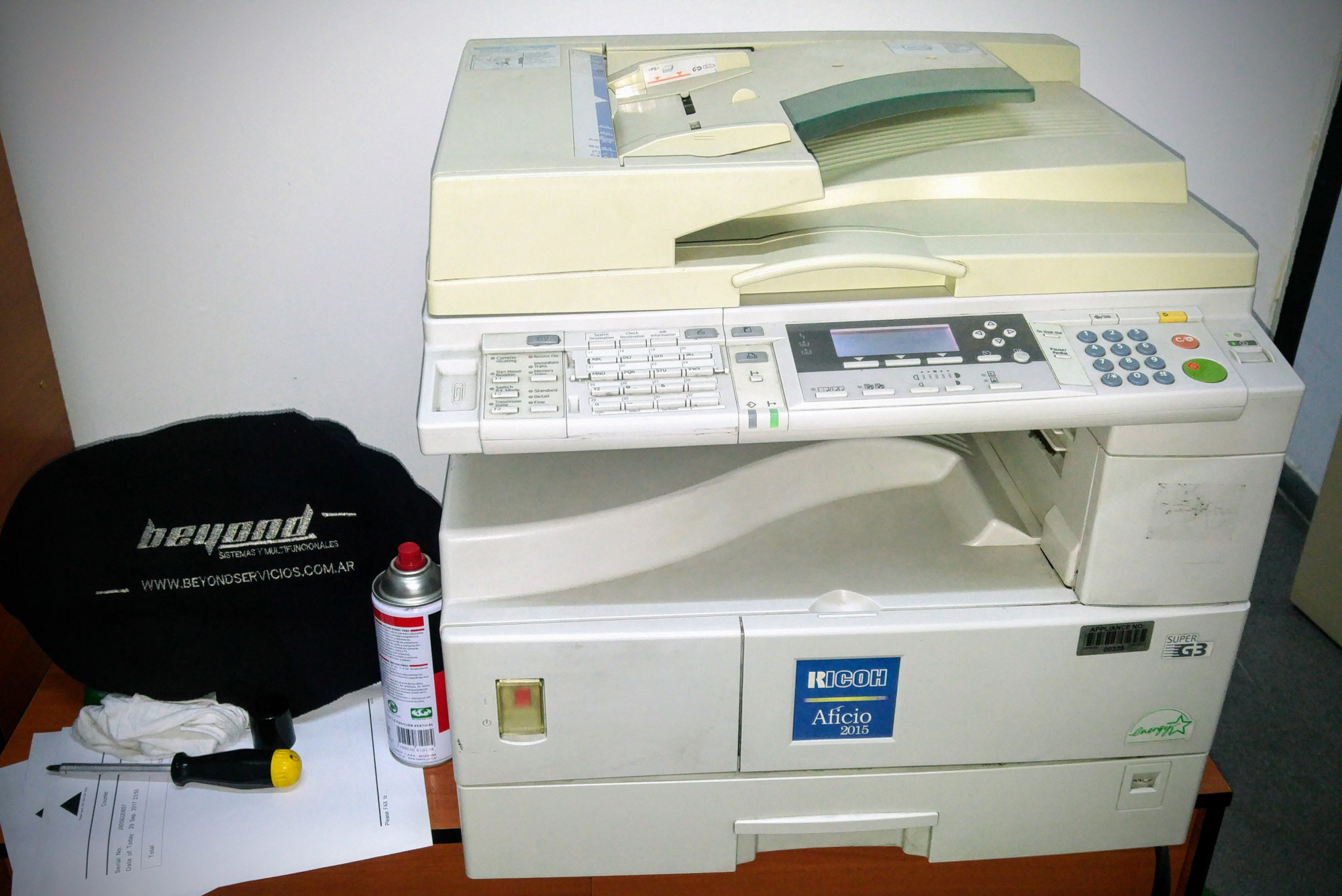 Estas dos Ricoh tenían problemas de trabas de hojas y muy claras las copias al imprimir y copiar. Lo solucionamos con una limpieza interna del camino del laser y los elementos de carga elétrica (fotos 1 y 3). En la toma de papel limpiamos y reemplazamos las ruedas de Pick-up según fuera necesario.