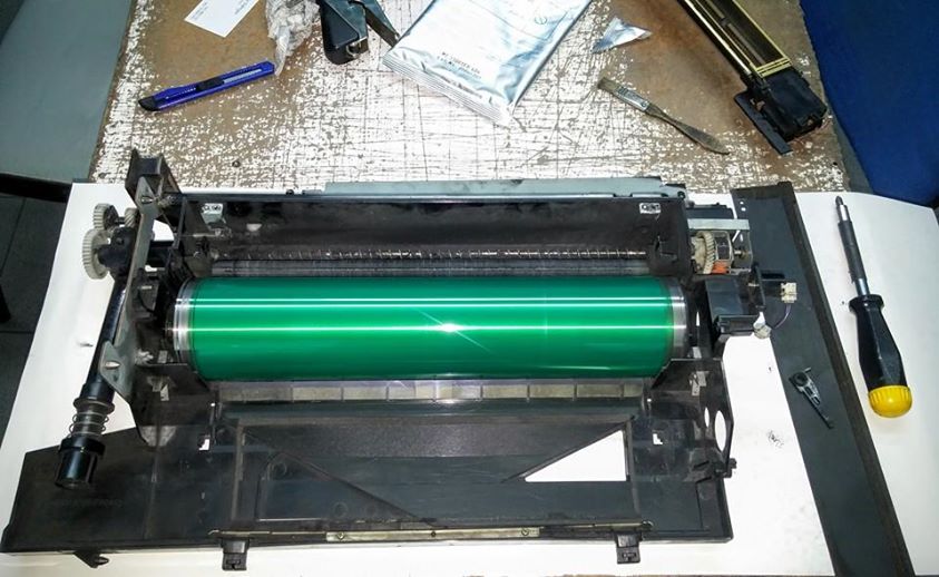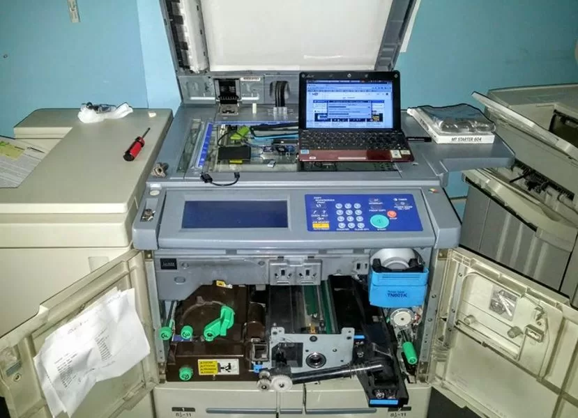 En esta Konica Minolta cambiamos el revelador, limpiamos las unidades y sus componentes. Por último realizamos los ajustes correspondientes para asegurar la calidad de impresión.