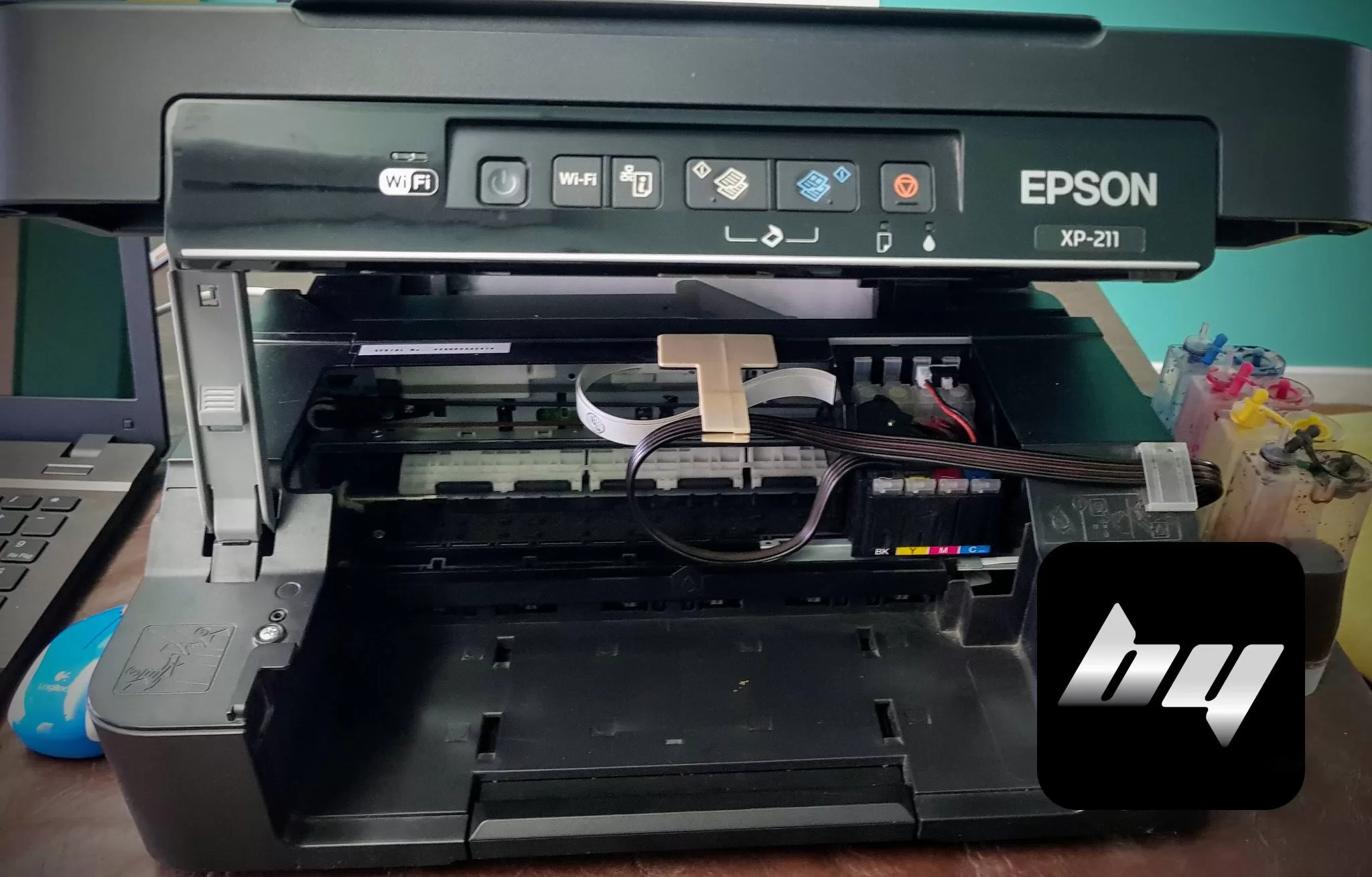 Esta impresora de tinta multifunción Epson XP-211 con sistema continuo no imprimía bien los colores. Lo solucionamos en un servicio a domicilio realizando una limpieza de cabezales con limpiador líquido. También reparamos el conector de la pila de reset del sistema (foto 1) y lo instalamos (foto 2). Fijamos correctamente la guía de tubos de alimentación de tinta (foto 3) y verificamos la calidad de impresión.