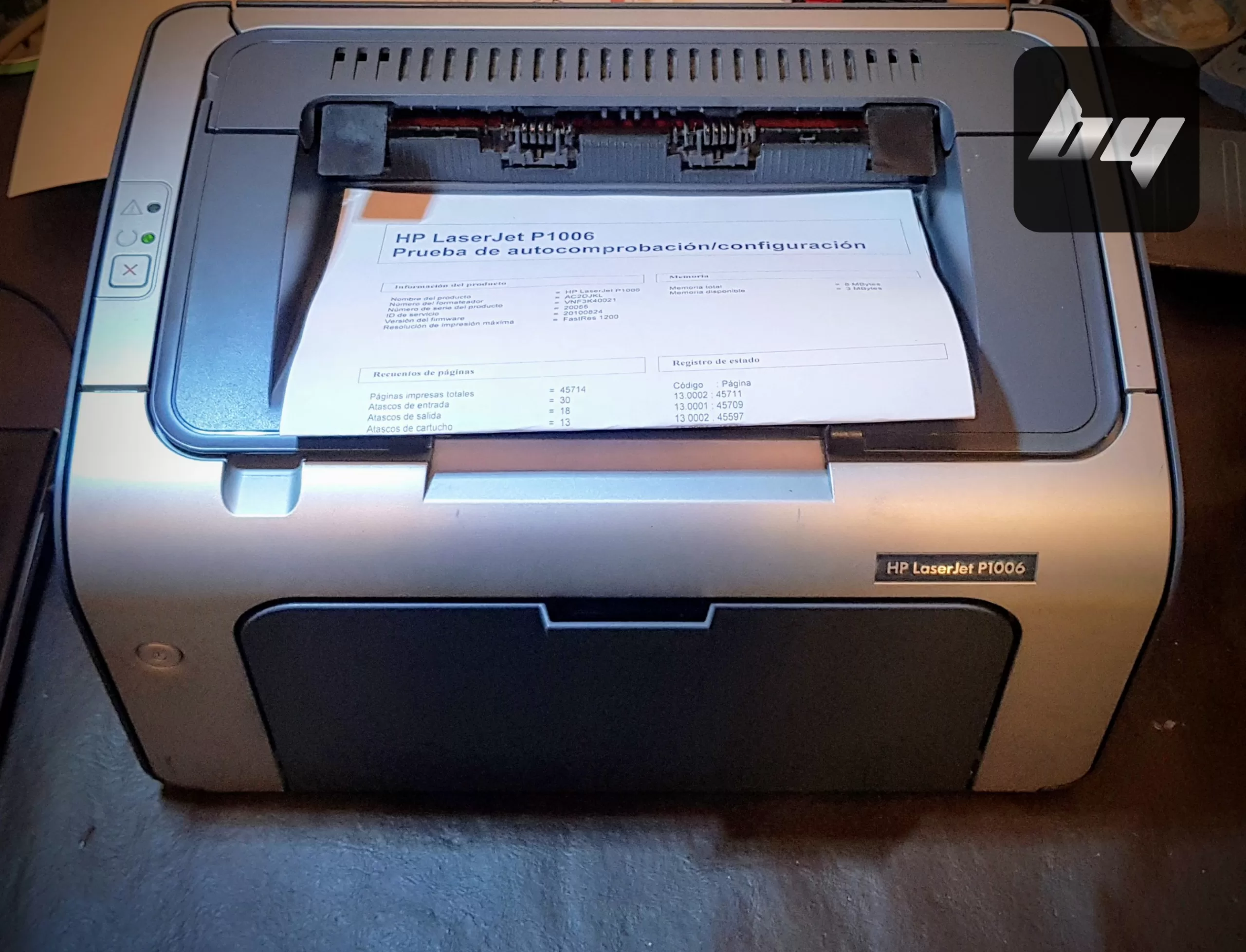 Esta impresora láser HP p1006 tenía dañado el fusor. Lo solucionamos desarmando el equipo (foto 1); limpiando y lubricando sus partes internas (foto 2); y reemplazando el repuesto (foto 3). Por último verificamos el funcionamiento y la calidad de impresión (foto 4).