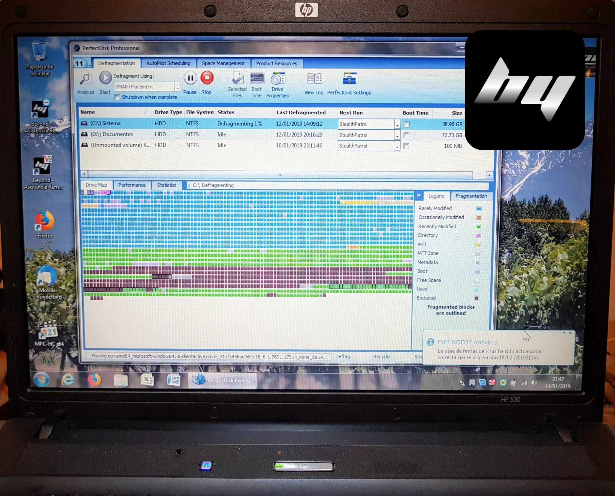 Esta notebook estaba totalmente desactualizada y no servía para trabajar. En vez de venderle una nueva lo solucionamos realizando una limpieza interna completa y del cooler (foto 1), y una ampliación de memoria RAM nueva (foto 2). Luego instalamos y actualizamos el sistema operativo Windows (foto 3) y los programas. Por último hicimos  una limpieza del sistema operativo y sistema de archivos (foto 4), y una optimización del sistema de archivos (foto 5) para dejarla en su máximo desempeño.