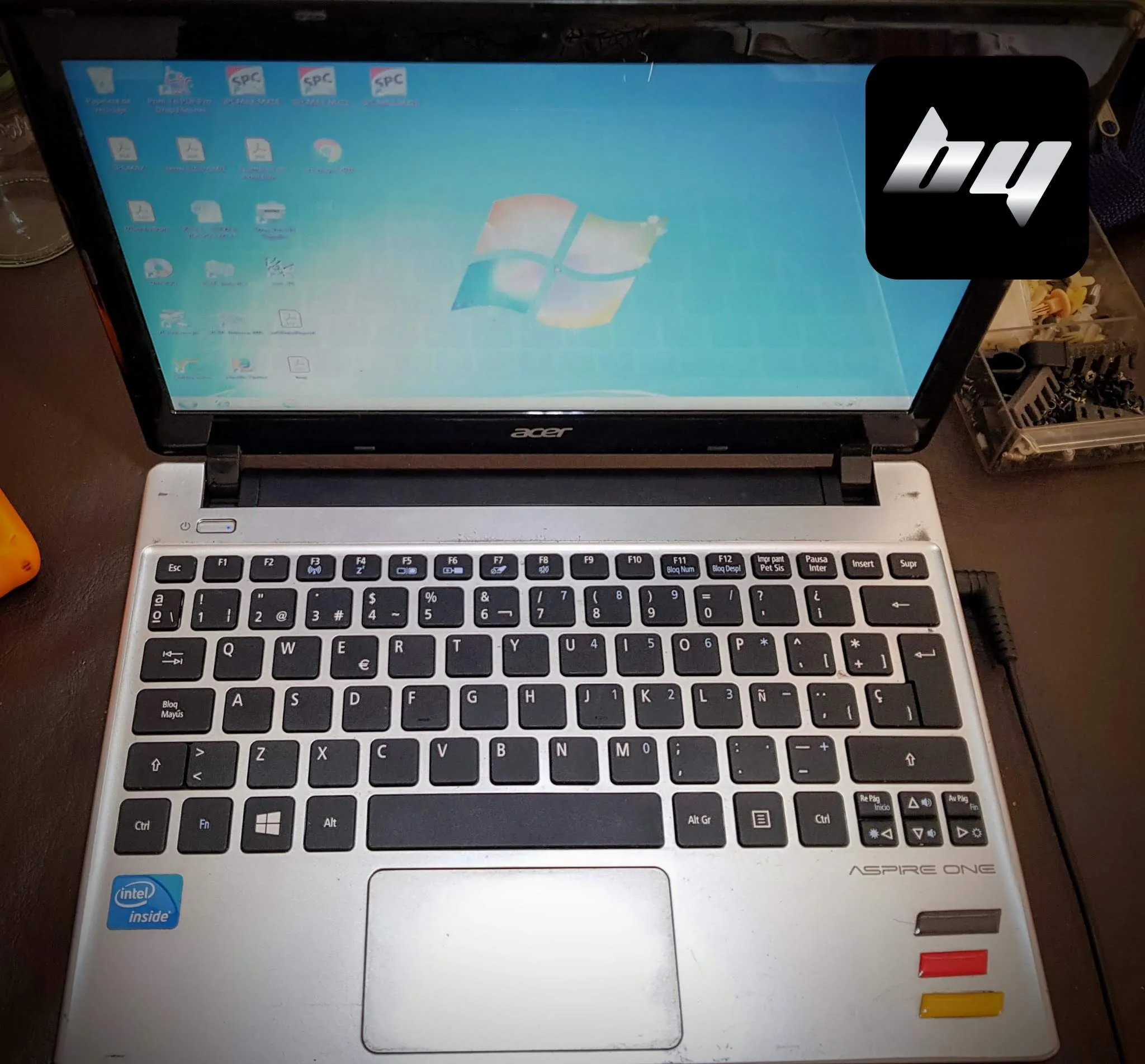Esta netbook Acer había permanecido mojada toda la noche por una gotera en el lugar de trabajo. Lo solucionamos haciendo una limpieza y deshumidificación del mother (fotos 1, 2 y 3). También tuvimos que reemplazar el teclado ya que el daño fue permanente (fotos 4, 5 y 6). Aprovechamos para hacer una limpieza de software, optimizar el sistema operativo para el uso exclusivo del equipo y ampliamos la memoria RAM para mejorar el desempeño general (foto 7). Por último optimizamos el sistema de archivos para un máximo rendimiento (foto 8).