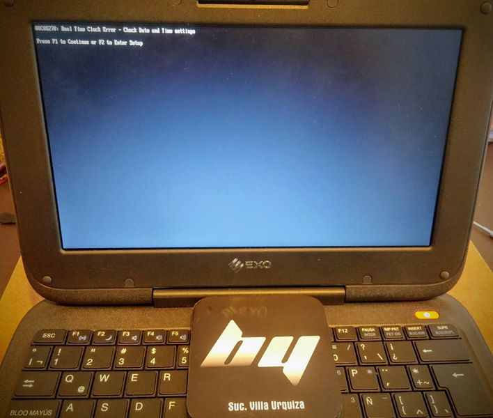 Esta escuela nos encargó solucionar un mensaje de error, como en la primer imagen, de 9 netbooks del parque informático. Diagnosticamos y reemplazamos la pila del BIOS. Aprovechamos para reparar y lubricar las bisagras para evitar las roturas características.