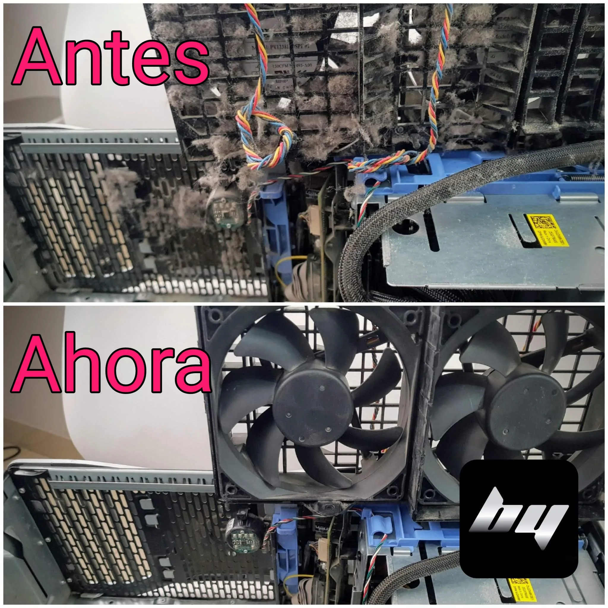 Esta empresa médica nos pidió un servicio a domicilio urgente, porque una computadora hacía mucho ruido con el uso normal de trabajo. Lo solucionamos realizando una limpieza interna completa con todos los cooler (fotos 1 y 2). Luego volvimos a armar los componentes internos (foto 3) y colocarla alejada del suelo para disminuir la entrada de suciedad (foto 4).